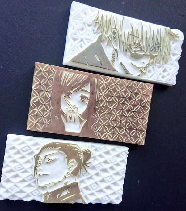 Reika ちょっと前にほった五条さん 最近全然ほれてないな 次は何をつくろうかな 呪術廻戦 五条悟 消しゴムはんこ